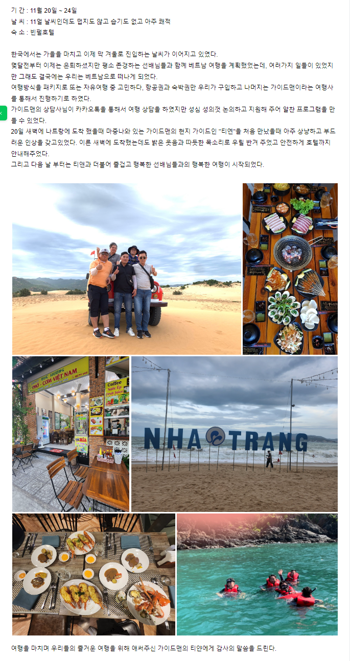 [나트랑] 가이드맨을 통해 나트랑 여행을 다녀 온 후
