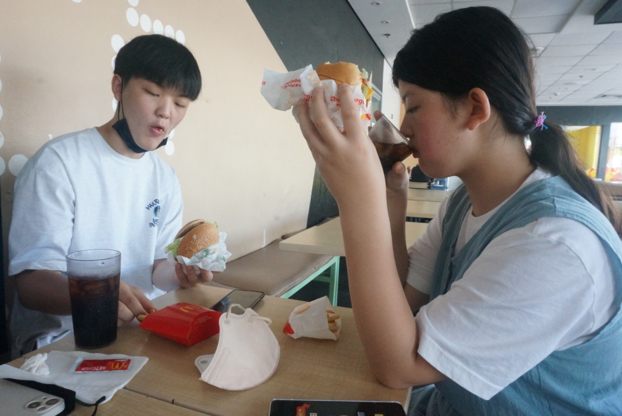 간단히 음료만 마실 참이었는데 조식을 제대로 안 먹은 아들은 버거까지.. 필리핀 버거는 사이즈가 작은 것 같아요~