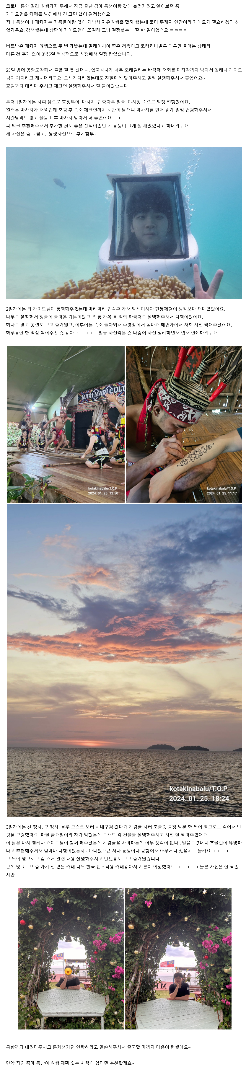 [코타키나발루] 동생과 3박5일 코타 여행 후기 (1/23~27 엘레나, 탑 가이드님)