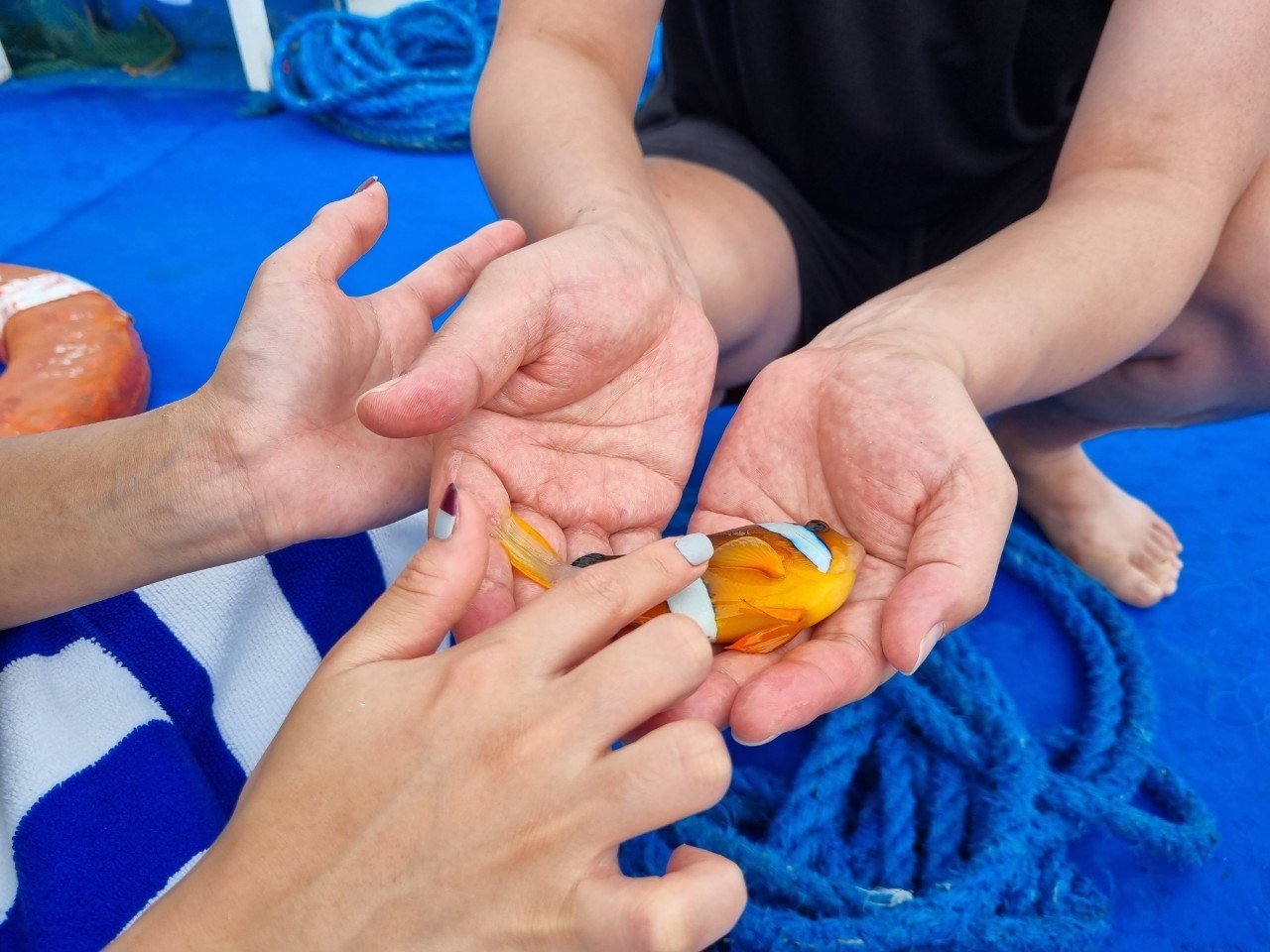 저기 사진에 보이는 현지인 두분! 아론가이님께서 초빙해오신 마이클과 짹슨 입니다. 하루종일 호핑을 즐기면서 함께했는데요 정말 순수하고 좋은분들이었어요. 물을 무서워하는 저도 안전하고 재밌게 즐겼답니다. 호핑배에도 딱 우리만있어서 하고싶은거 다 할수있었어요!