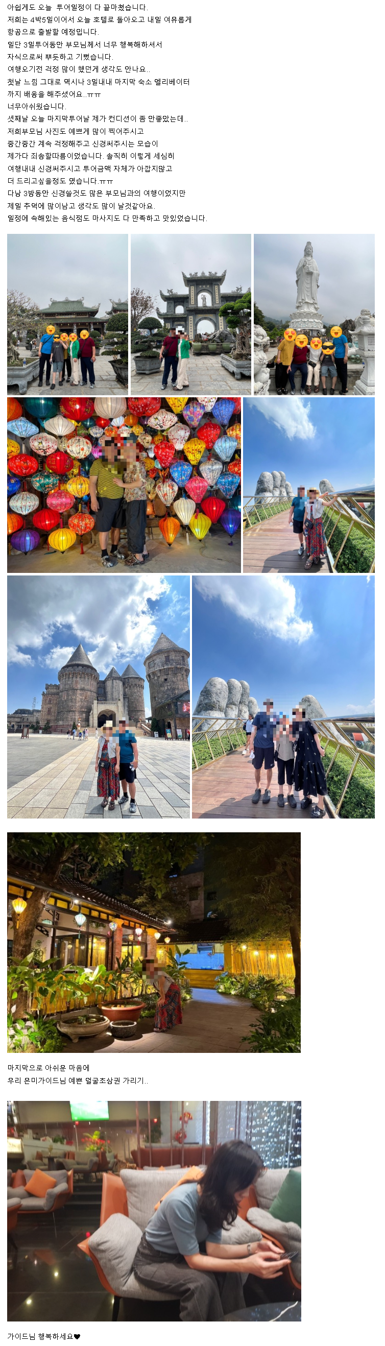 [다낭] "은미" 가이드님 덕분에 부모님 행복하셨어요^^감사합니다♡