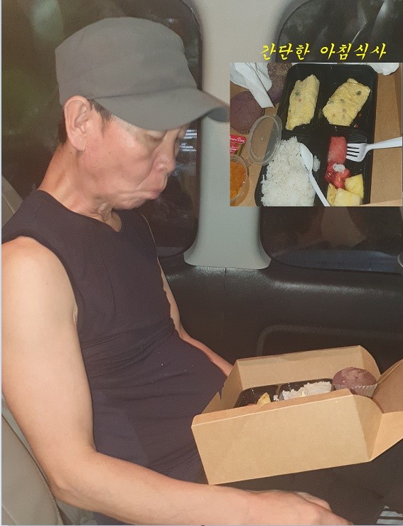 토착후 차에서 조식 냠냠~~