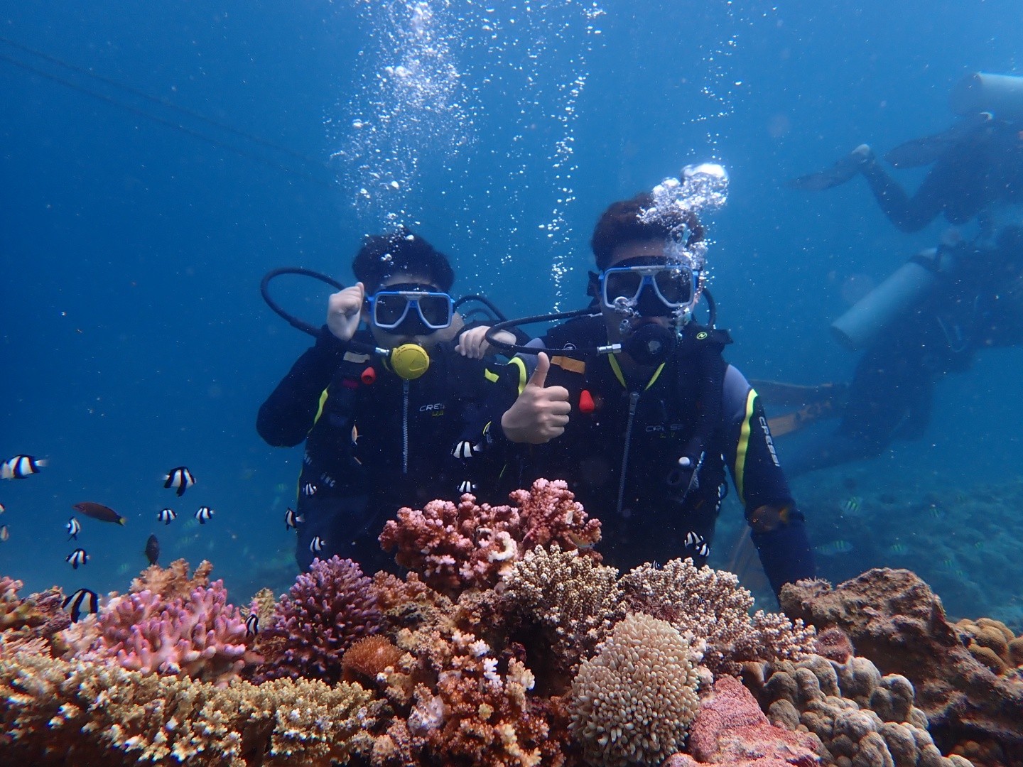 처음에는 무서웠지만 아론삼촌을 만나고나니 든든했어요 아론삼촌과첫째날은스킨스쿠버와페러세일링을 했어요