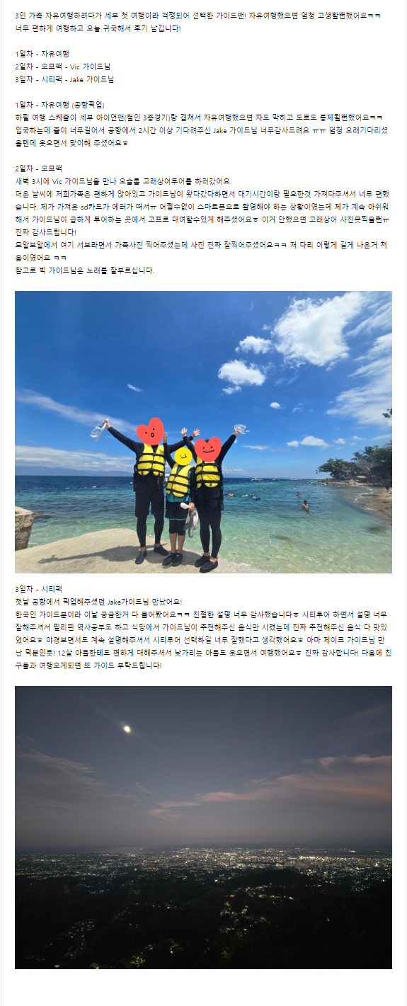 [세부] 3박 5일 세부 여행 후기 - 빅, 제이크 가이드님 감사해요!!