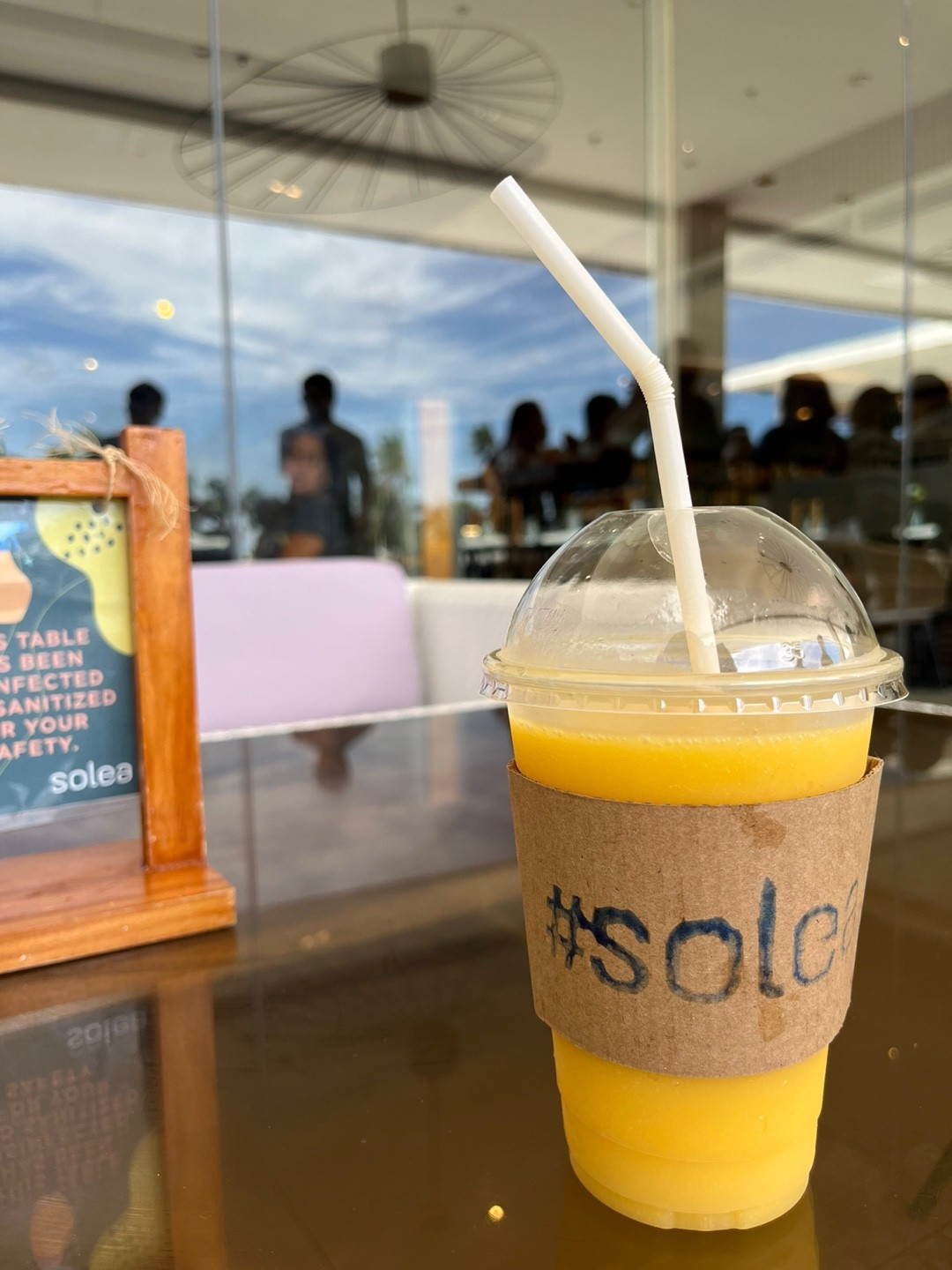 솔레아에서 기념샷을 찍고 마지막으로 망고주스 쬽쬽 먹으며 체크아웃도 하고 로비에서 채플린을 기다림! 근데 여기서