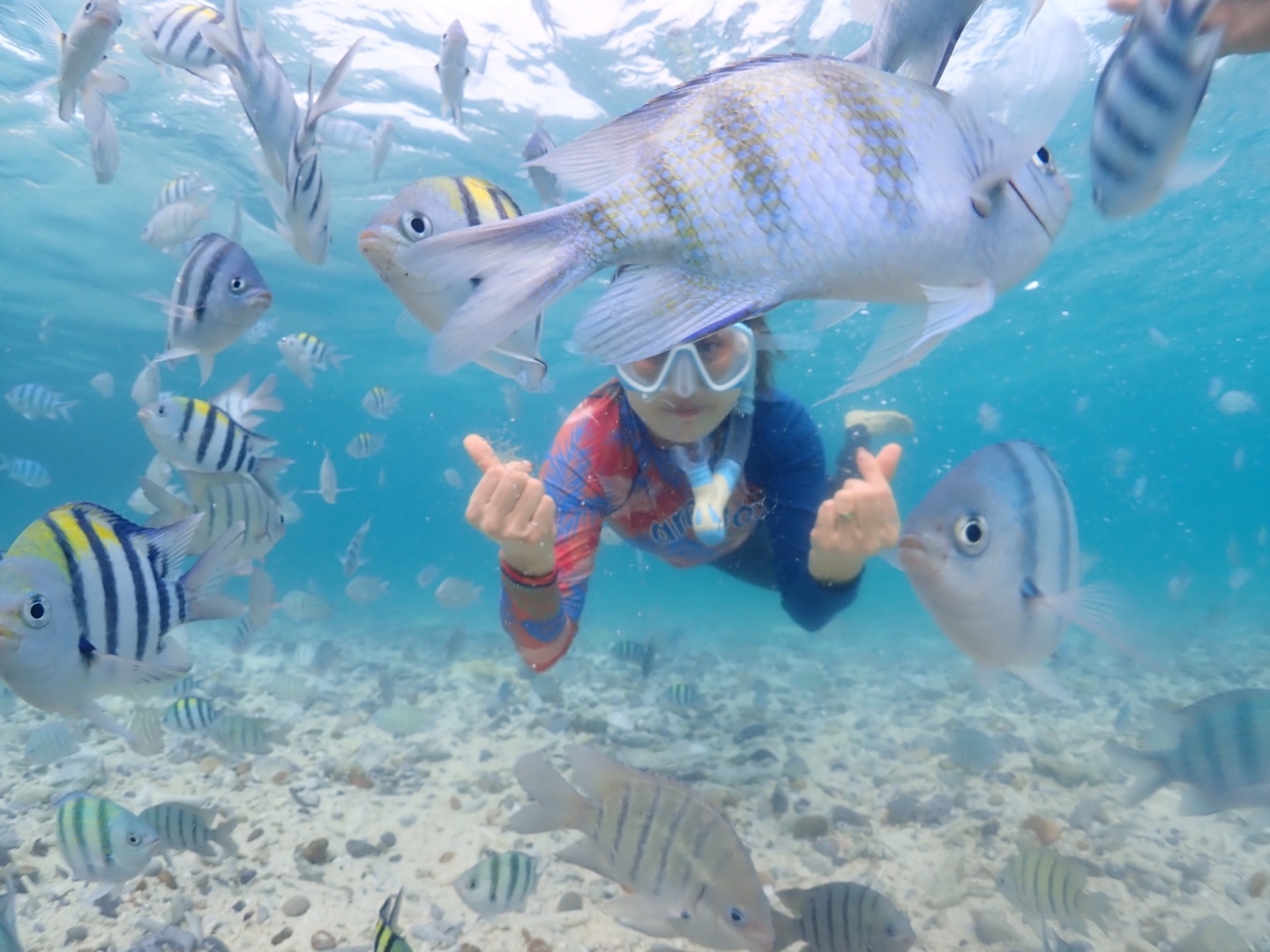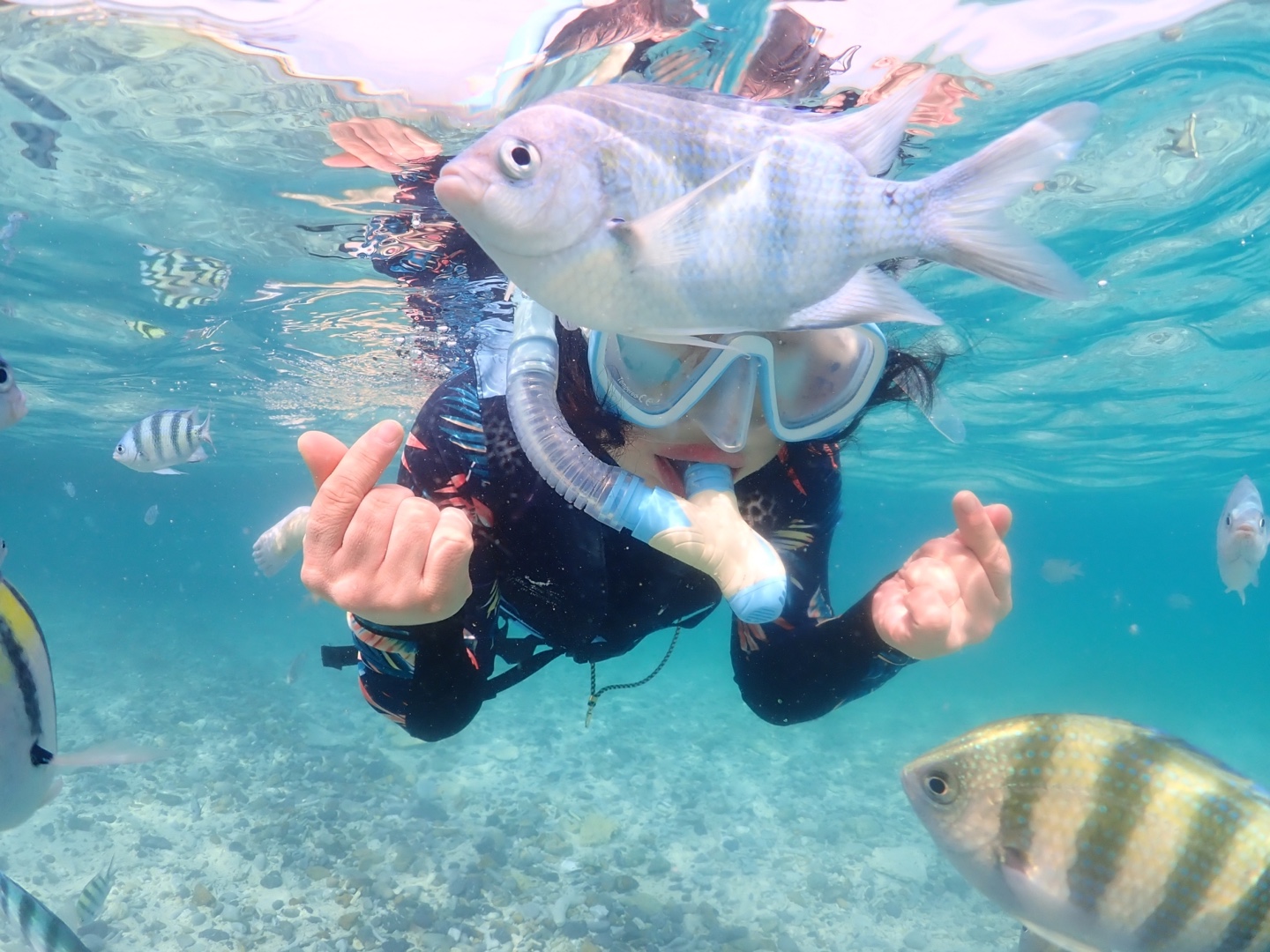 1미터 깊이에서 스노쿨링 초보자도 할 수 있게 친절하게 가르쳐주시고,