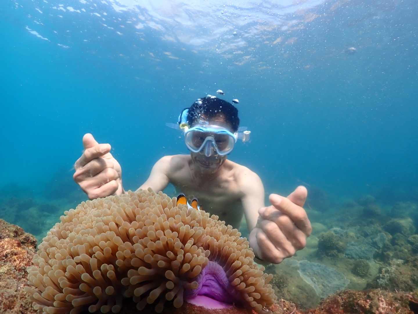 3미터 깊이로 잠수하여 산호와 함께 찍은 이 사진은 저의 인생샷입니다.