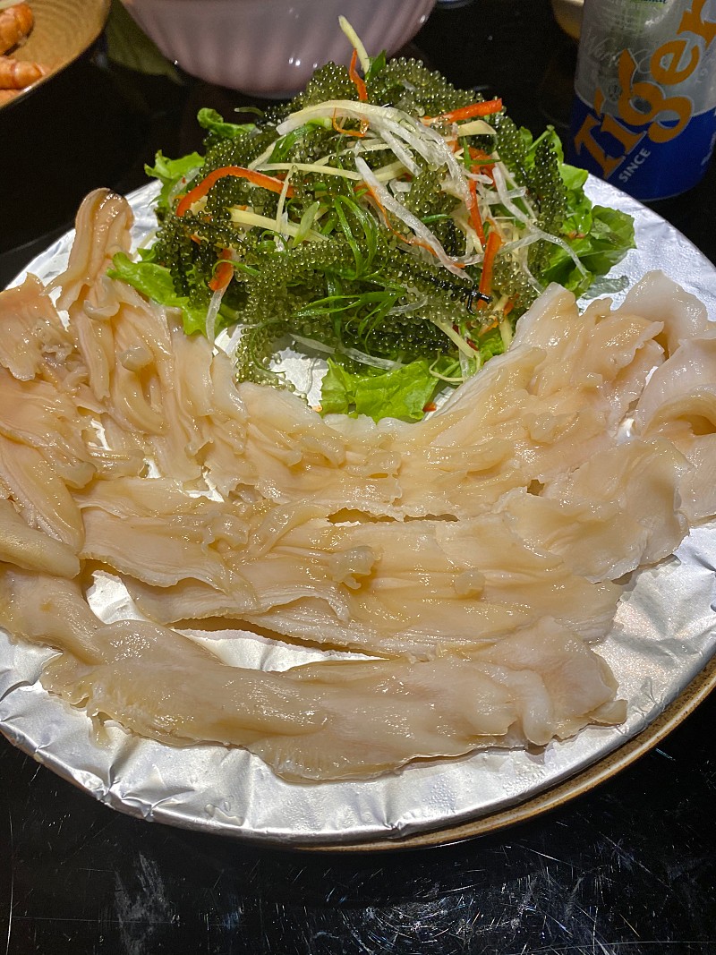바나힐에서 내려온후 저희 가족이 코끼리 조개를 한번 먹어보고 싶어서 일정 끝나고 먹어보려고 식당을 물어봤는데 누나가 일정에는 없지만 저녁을 먹고 그 식당에 대려가 주어서 코끼리 조개,새우,조개,랍스타를 시켜주고 D.C도 도와주었습니다ㅋㅋ 저녁에 끝나고 저희끼리 갔으면 길 찾기도 어려웠을것이고 지금보다 훨씬 비싼가격에 먹었을것인데 일정에도 없는 프로그램을 바로 만들어주셔서 정말 감사했습니다 저희는 스테이크를 먹을때부터 계속 밥먹을때 같은 식탁에서 수다떨면서 같이 누나랑 밥을 먹었어요. 사실 처음에는 누나가 외국인이라 소통이 어려우면 어쩌지라는 생각도 했는데 그런생각은 전혀 할 필요가 없었습니다. 하직 내일 하루 남았지만 내일도 계획에 없는 일정도 누나가 만들어줘서 정말 고마웠습니다.