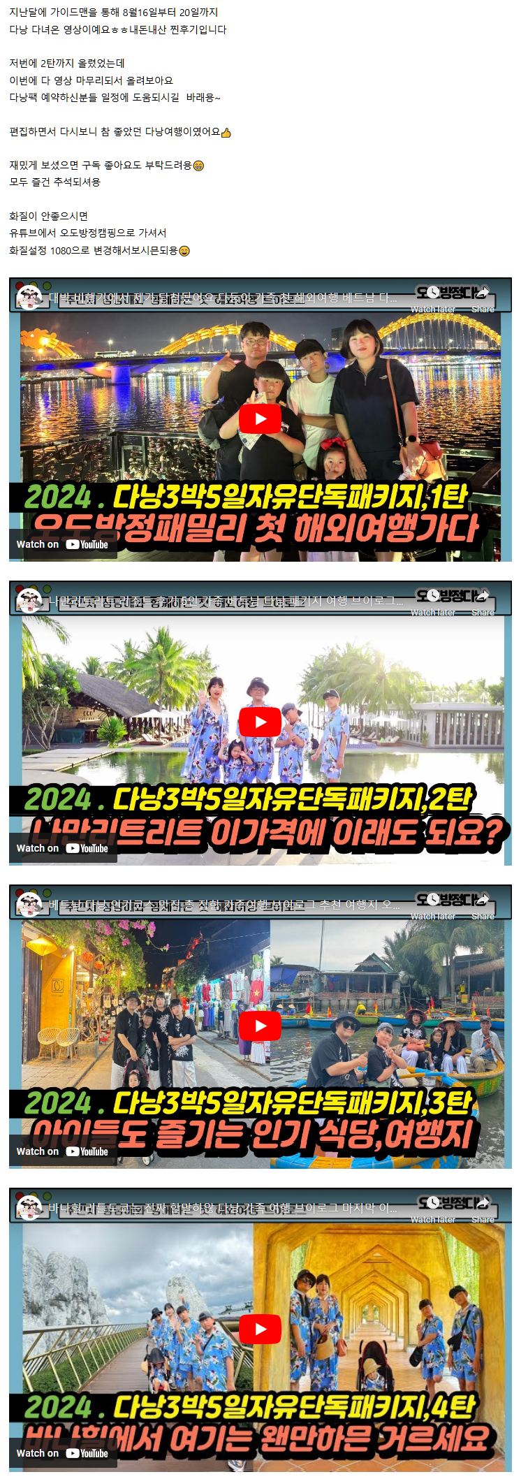 [다낭] 다낭 후기 1~4탄까지 영상으로 구경오세용