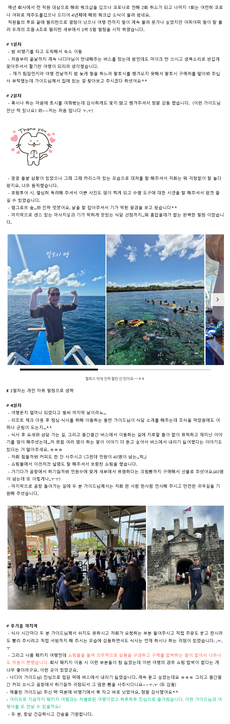[세부] [세부여행] 긴 여운이 남는 회사 워크샵 - 나디아 가이드님 (feat. 채플린 가이드님)