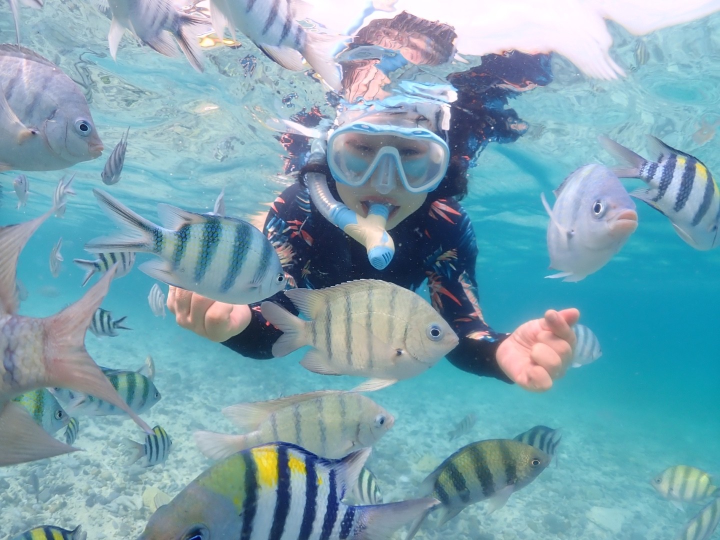 1미터 깊이에서 스노쿨링 초보자도 할 수 있게 친절하게 가르쳐주시고,
