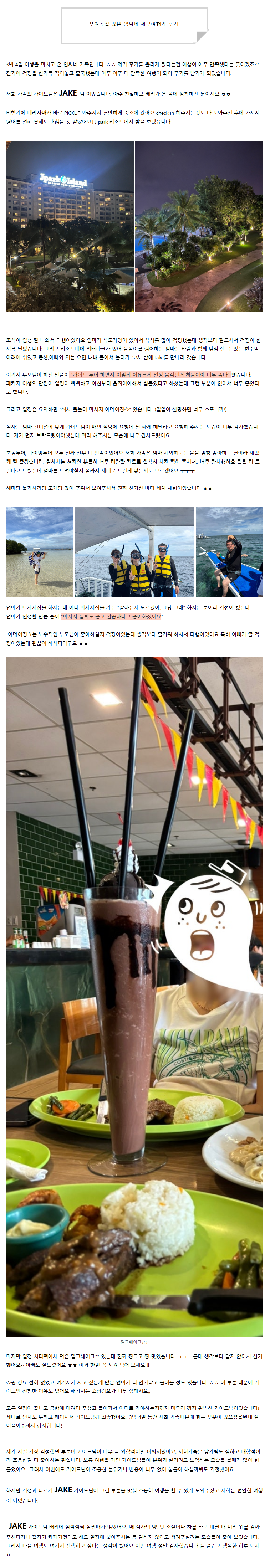 [세부] JAKE 가이드님과 우여곡절 많은 임씨네 가족여행기 후기
