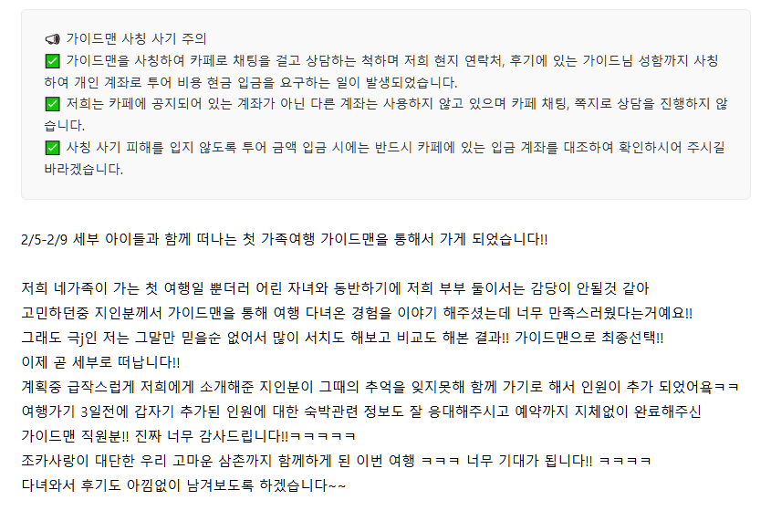 여행후기 본문:
