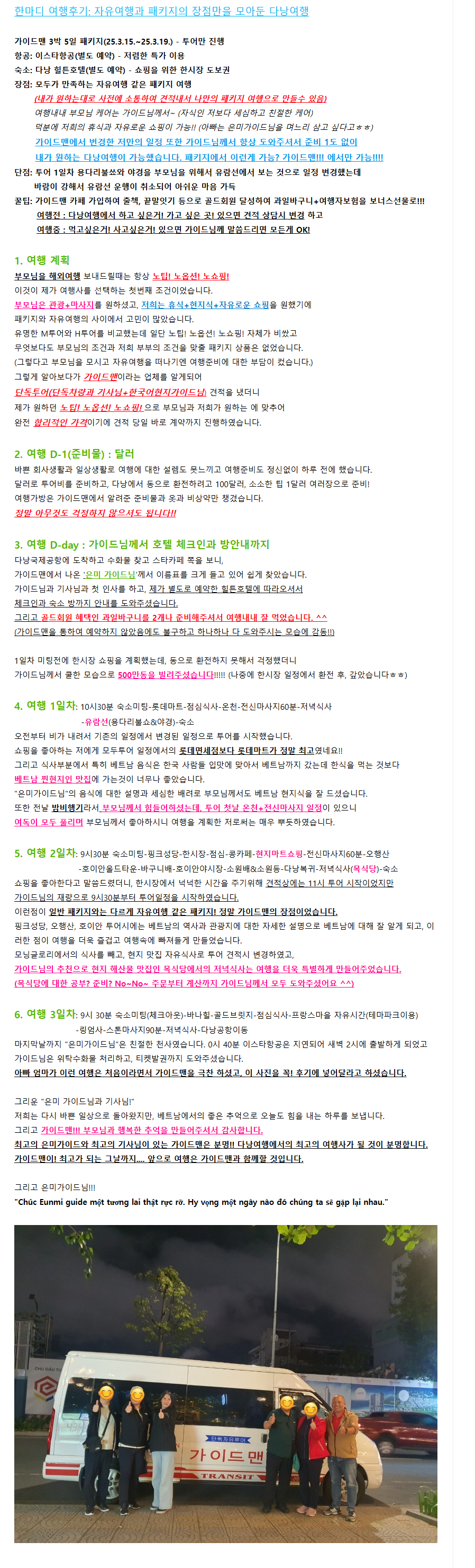 [다낭] 자유여행과 패키지의 장점만을 모아둔 가이드맨과 함께한 다낭여행