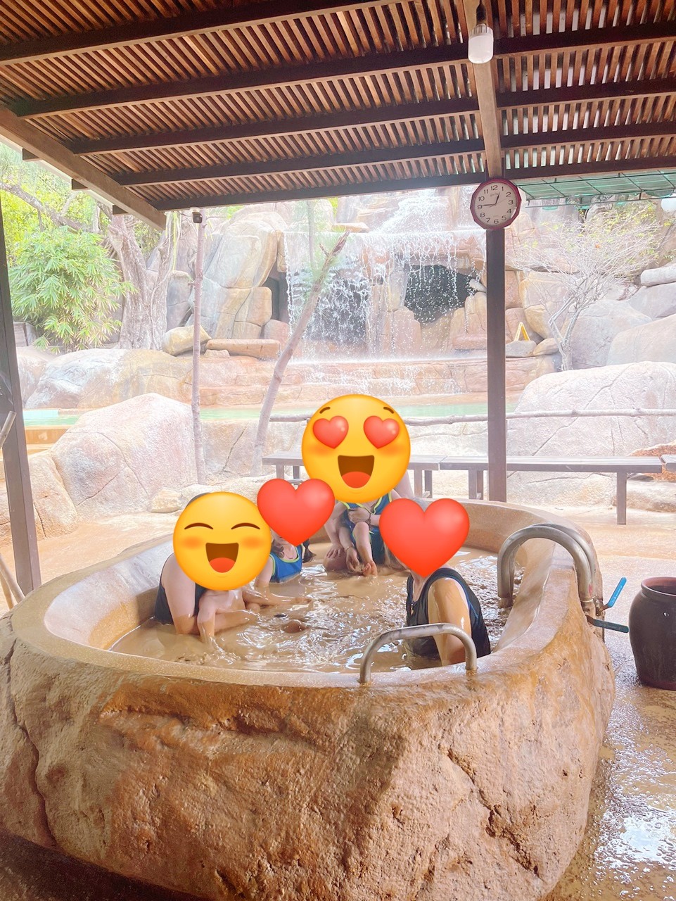 머드후 온천했는데 아이들이 나오기 싫어했답니다