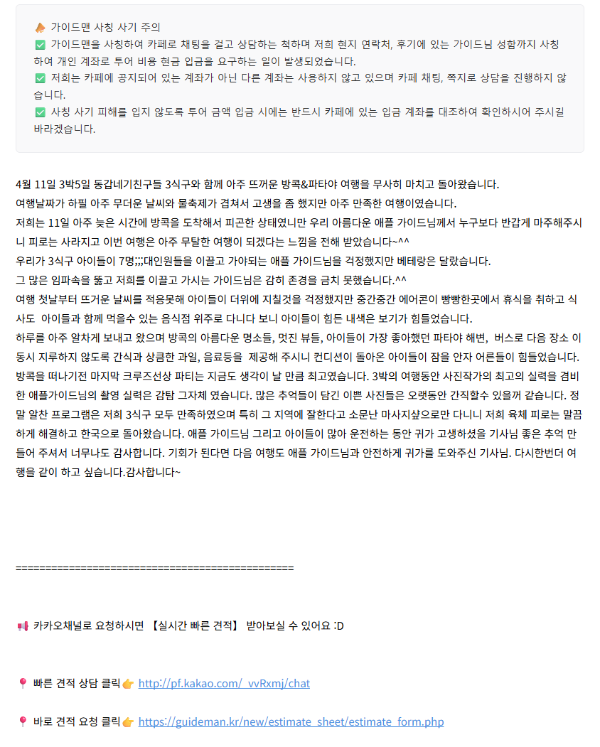 여행후기 본문https://cafe.naver.com/bangkokguideman/31419