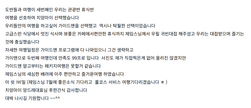여행후기 본문https://cafe.naver.com/chiangmaiguideman/3316(2025.06.27)