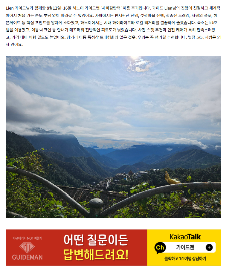 [하노이] Lien 가이드님과 함께한 사파감탄팩 후기입니다.