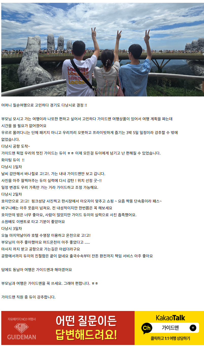 여행후기 본문https://cafe.naver.com/guidemandanang/78318(2025.07.19)