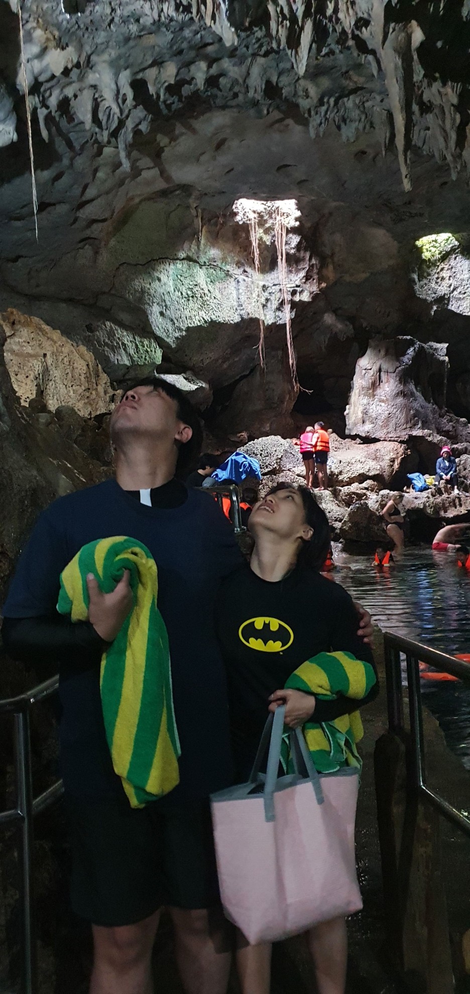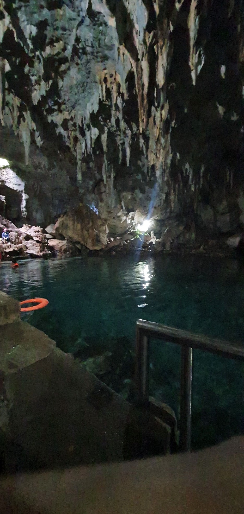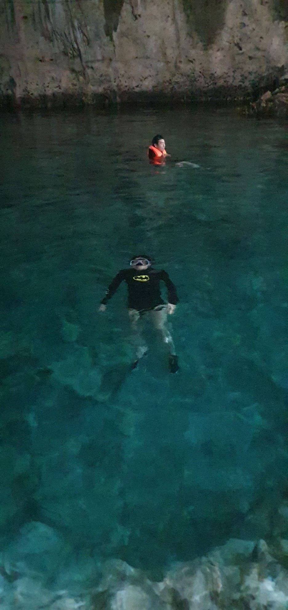 I was worried that it would be cold because it was a cave, but the water wasn't cold, it was deep enough and wide enough, but there weren't many people, so it was really nice! The light came in from the sky and there were lights inside, so the cave was bright enough. The water is very clear!