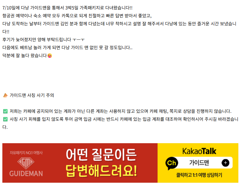 여행후기 본문https://cafe.naver.com/guidemandanang/78792(2025.07.27)