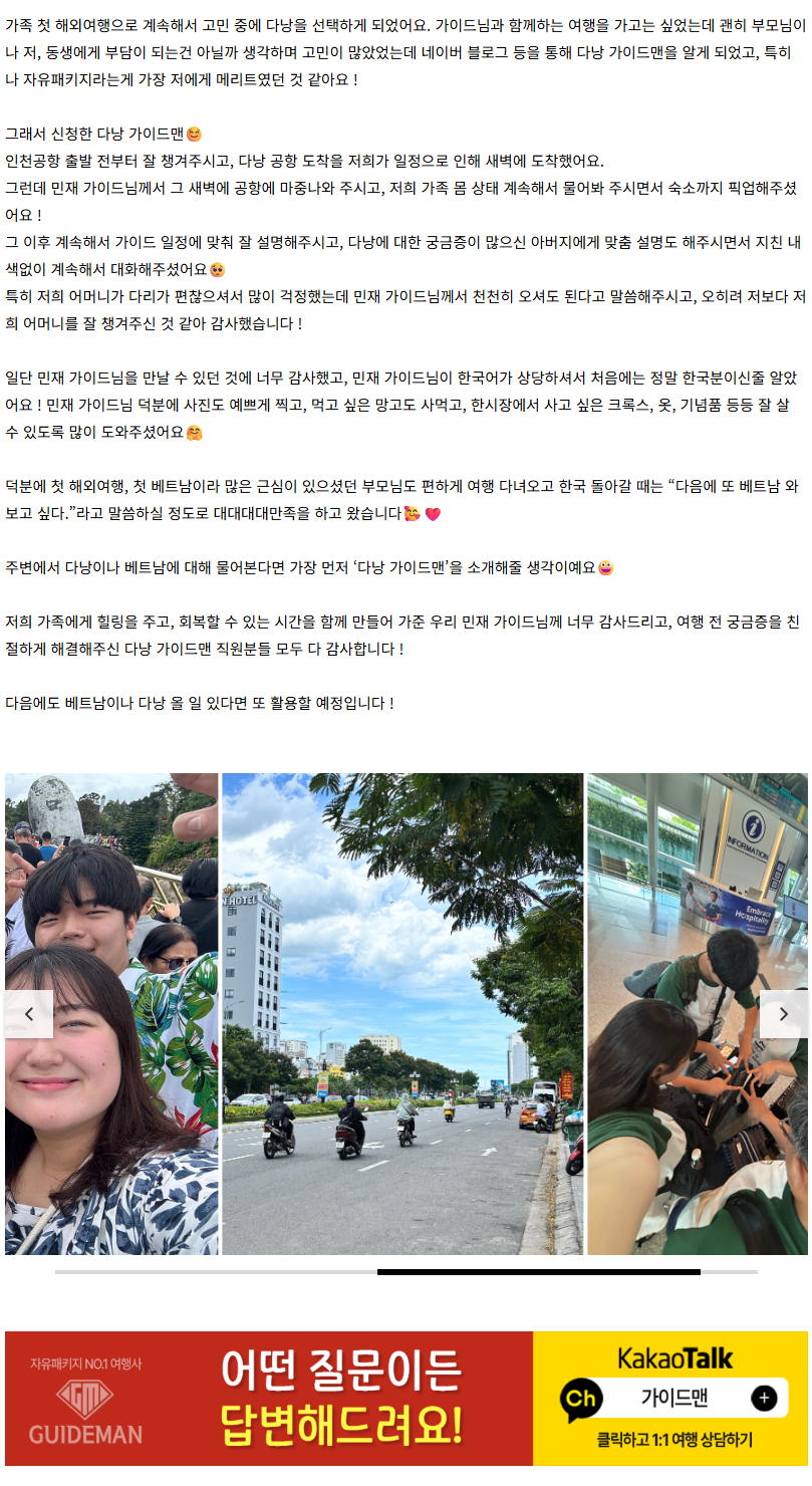 여행후기 본문https://cafe.naver.com/guidemandanang/78796(2025.07.28)