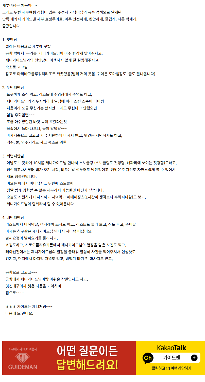 여행후기 본문https://cafe.naver.com/cebuguideman/98676(2025.08.28)