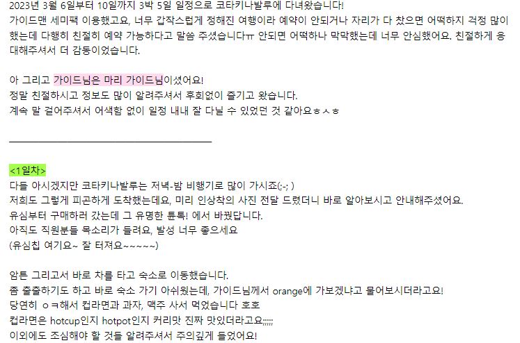 여행후기 본문: