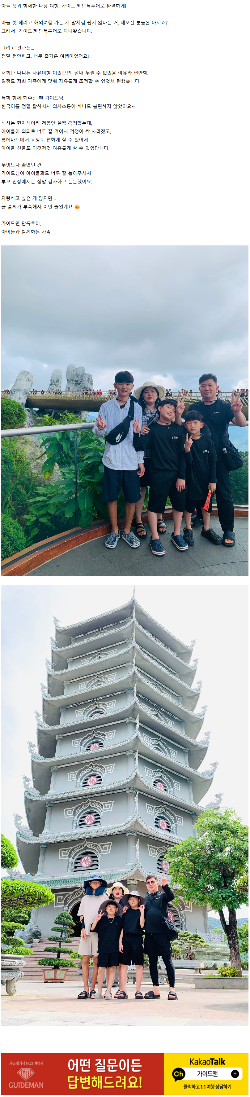 [다낭] 아들 셋과 함께한 다낭 여행 의심이 해소되고 확신이 된 가이드맨 그리고 감사한 혠 가이드