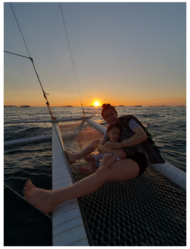 After the meal, we unpacked our luggage and rested for a while, and we rode the sailing boat that was originally supposed to be held tomorrow. Judy made a reservation just in time for sunset, so we got a lot of real life photos!!! ㅋㅋㅋ He took the picture with passion... ㅋ ㅋ Ah...and Judy-nim seems to know the best restaurants in Boracay!!! There is a pizza restaurant near our accommodation, and the taste is amazing!!! I ended the day with pizza and pasta for a late night snack.