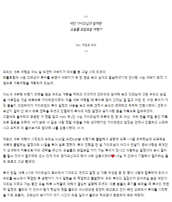 여행후기 본문: https://cafe.naver.com/cebuguideman/53379