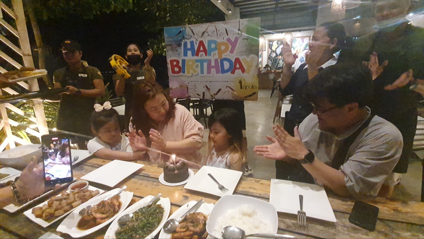 낯선환경에 적응이 어려운 우리모녀를 위해 다정히 말도걸어주시고 정말 몇번의 해외여행중 최고로 맘편히 잘자고 잘먹고 지내다왔어요!!급하게 떠난다고 아이들위해 초하나 불어주지못했는데 저녁식사시간에 생일파티를 퐝~~~~!!
