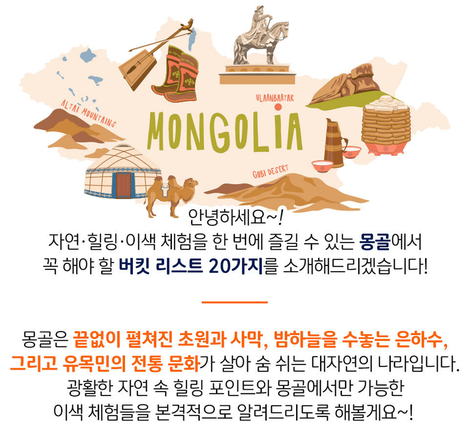 몽골 여행 시 꼭 해봐야 할 필수 버킷리스트 20가지!